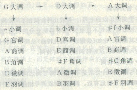 宫音相同的各种调式,称为同宫系统调式。比如“C宫系统各调”,包括C宫调、D商调、E角调、G徵调、A羽调,都是以C为宫。